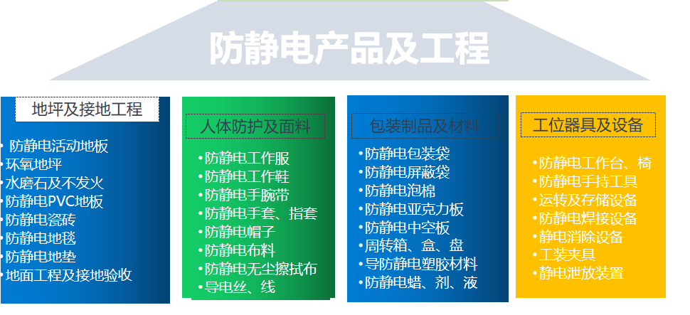 检测对象涉及防静电地坪工程、地板及材料;人体静电防护用品;防静电包装材料;防静电工作台、工位器具设备;物流周转箱、车用具;离子风机等静电消散设备等。